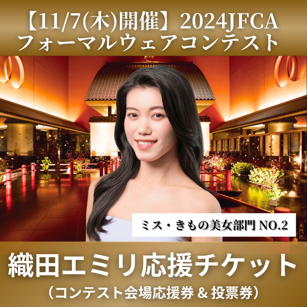 2024JFCAフォーマルウェアコンテストにおいて【織田エミリ】さんの一般席付き応援チケットです。